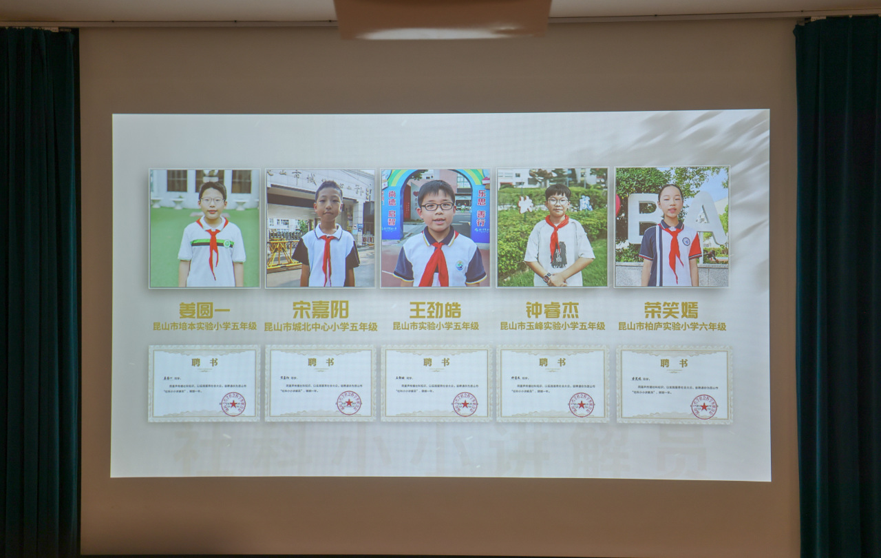活动还为今年全国各省区市社科普及基地讲解员大赛和全省社科普及基地讲解技能大赛苏州地区选拔赛获奖选手、苏州市“社科听我说”短视频大赛获奖作品颁发荣誉证书;5位小学生受聘为“昆山市社科小小讲解员”,成为社科普及“小小接班人”。