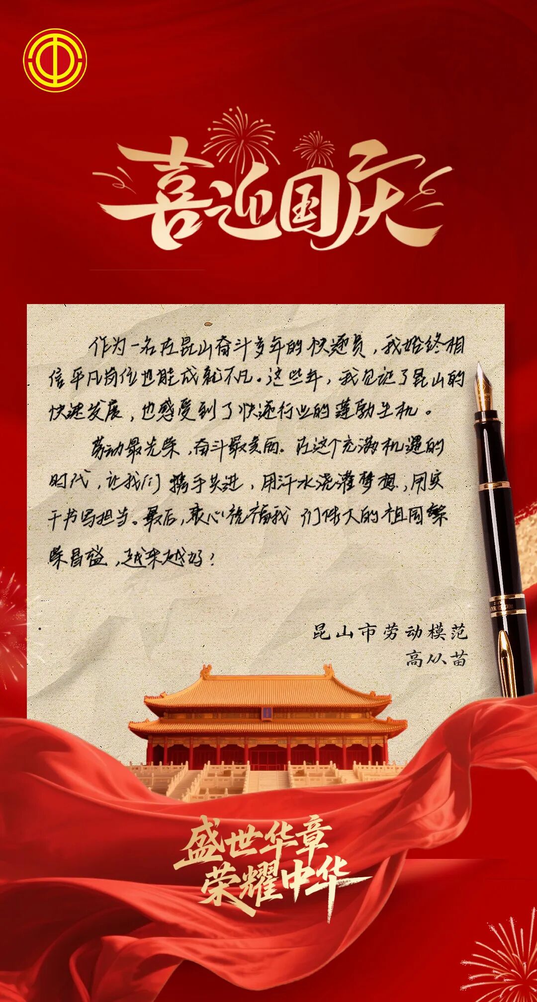 以笔寄情 · 共颂华诞!昆山市总工会携手劳模代表,向伟大祖国献上美好祝愿