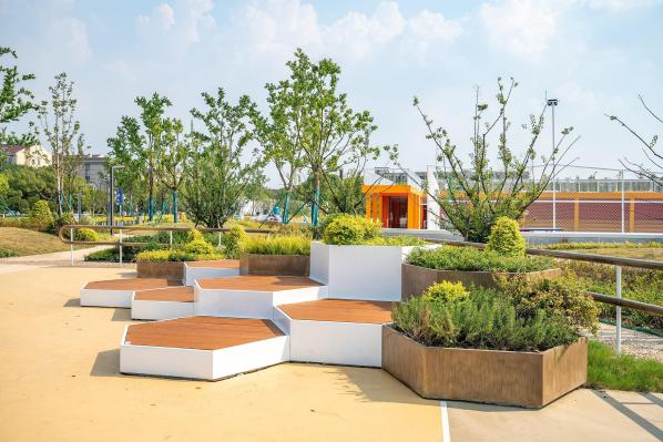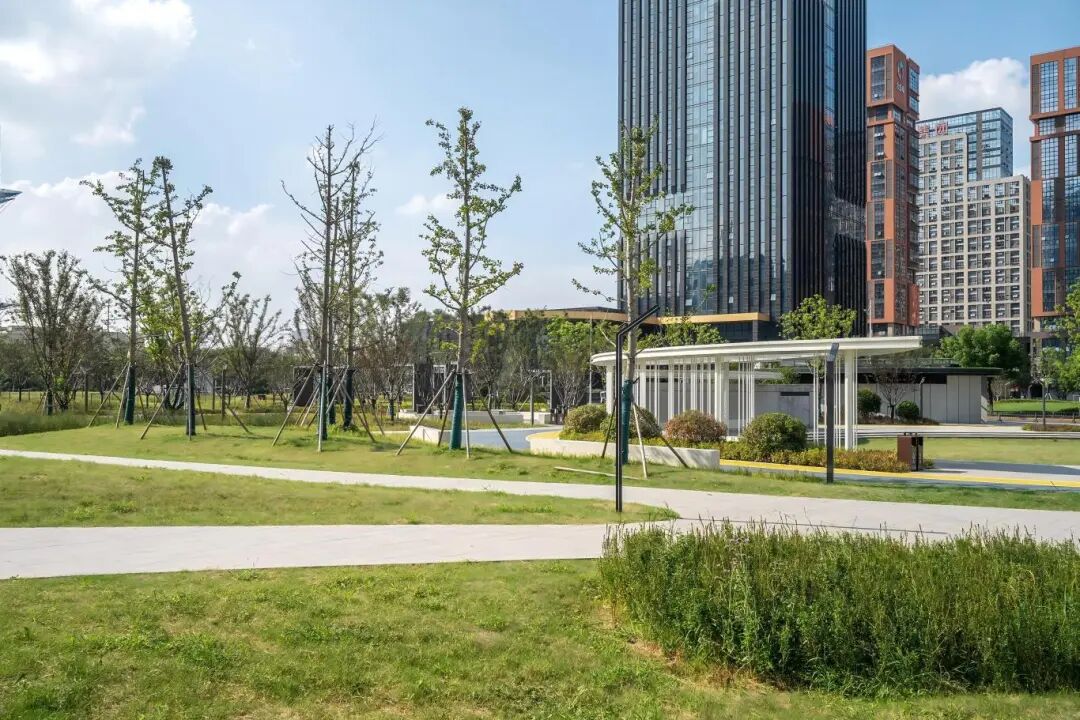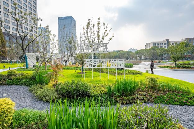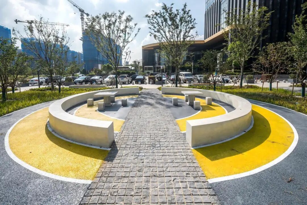 改造前,这里是被办公楼切分成的三个小地块,南侧紧邻城市主干道,北侧和西侧为商业综合体,东侧被住宅区所包围。场地多为裸露绿地,功能单一,鲜少有人驻足。改造后,公园成功实现了人造景观与自然的巧妙融合,形成贯穿城市的生态绿洲,创建了多元活力的城市休闲空间,满足多样化的户外需求,已成为展示城市新形象的重要窗口和片区记忆点。