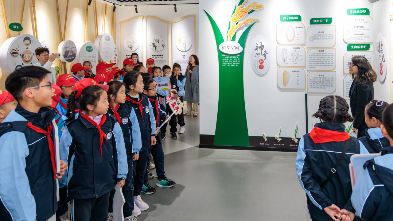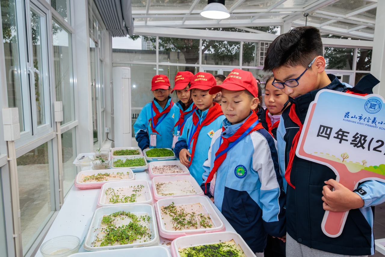 清晨的校园虽无暖阳,却因期盼而变得格外温馨。信义小学的学生代表手持自制欢迎卡,翘首等候远方小伙伴的到来。克州孩子身着当地校服、头戴小红帽,眼神里满是对江南校园的好奇与期待。简单的问候打破羞涩,“你好”“欢迎”的话语中,友谊的种子悄然萌发。在辅导员老师带领下,两地学子结对参观“信义八景”,在“锄禾馆”共同辨认五谷,感受农耕文明的厚重;在“智慧农场”围观无土栽培绿植,发出阵阵惊叹;走进“信义书院”,古朴书香让孩子们不约而同放轻脚步,沉浸在文化熏陶中。“这里像个大花园,还有自己的农场,太酷了!”克州少先队员难掩兴奋,而他的昆山小伙伴则满心期待:“想听听新疆的故事,更想和他们一起学习成长。”