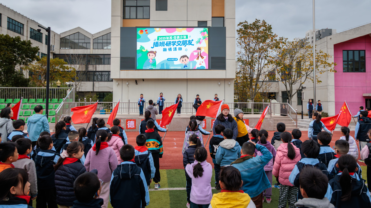 上午9时,庄严的升旗仪式在操场举行。雄壮的国歌声中,全体师生肃立注目,五星红旗冉冉升起。这一刻,地域距离与文化差异被化作共同的民族认同与爱国情怀。“这是我第一次参加研学、第一次来到昆山,希望学到更多新知识,见识家乡没有的事物。”来自阿图什市第一小学的刘梓涵眼神坚定。昆山市信义小学校党支部书记、校长许蕴霞在欢迎辞中深情寄语:“教育的使命是搭建桥梁而非高墙。我们希望通过沉浸式插班体验,让昆山孩子看见远方风土,让克州孩子感受江南温度,用童心碰撞播种友谊与希望。”