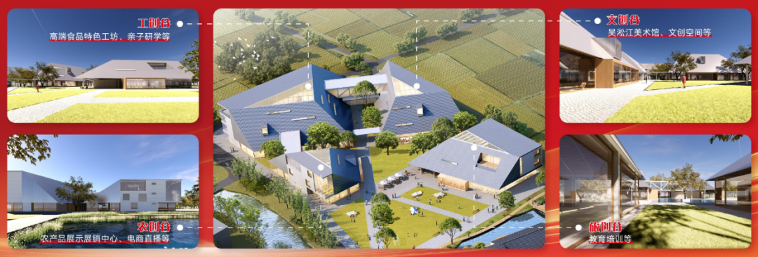 金华村作为全国文明村,不仅是张浦独具特色的重点乡村,更是昆山推进乡村全面振兴的亮丽名片。“食尚张浦·田园金谷”项目位于张浦镇金华村,投资金额约6000万元。作为我市首张乡村建设规划许可证核发后启动建设的乡村项目,该项目对全市乡村建设规范化发展具有积极的示范意义。项目以农工文旅协同发展为创新驱动,涵盖展示展销、电商直播、研学工坊、教育培训等多元业态。其中,文创谷板块重点打造的吴淞江美术馆建设项目已被列入苏州“811”文化强市计划,未来将成为区域文化新地标。