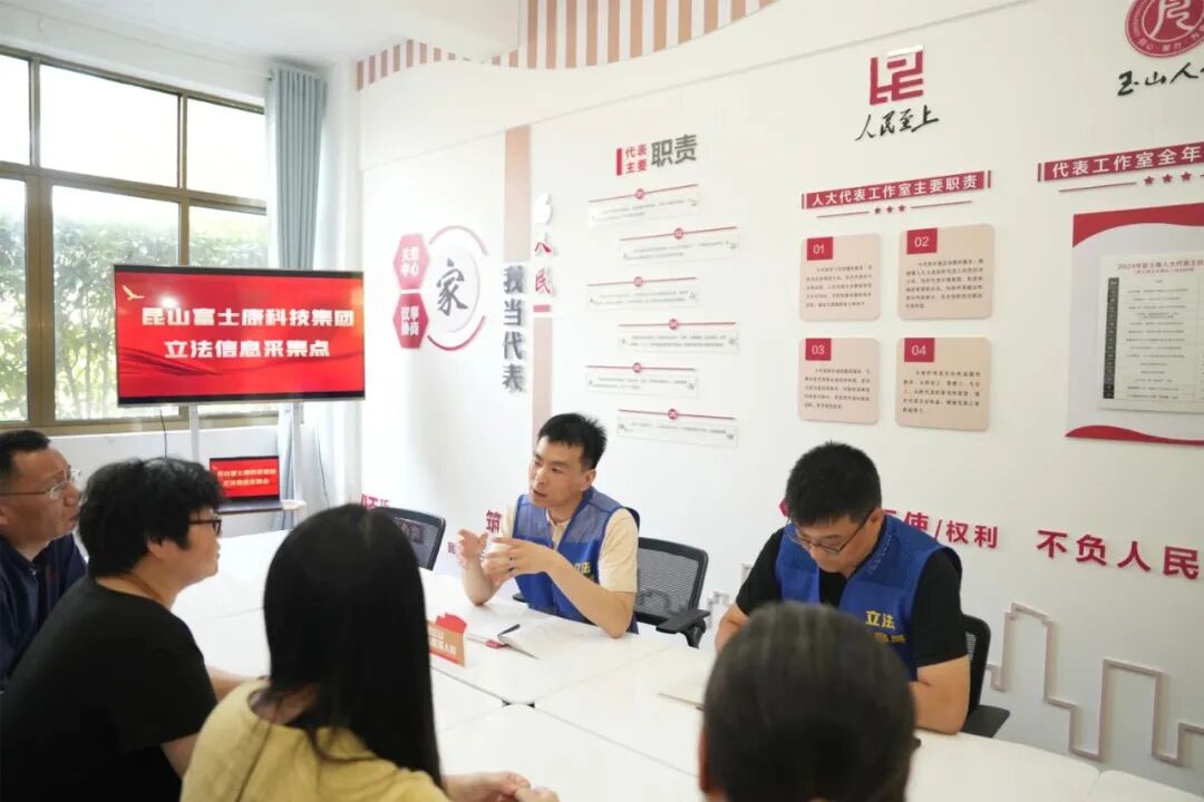 ▲立法信息员在昆山富士康科技集团立法信息采集点开展立法意见征集