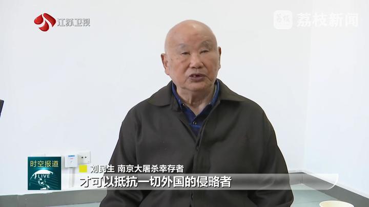 南京大屠杀幸存者刘民生说:“因为天气太冷,我也长时间地待在户外就哭闹,一个日本鬼子跑到我面前在我的大腿上刺了一刀。我父亲同时也给日本鬼子抓起来了。不止我父亲一个人,抓了两卡车。当时这些人都被带到中山码头用机枪扫射,尸体倒在长江里面,永远就回不来了。这样的家祭活动,是要让我们的子孙后代知道,要使国家富强起来才可以抵抗一切外国的侵略者。”