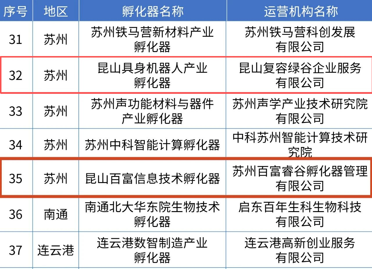 近日,江苏省科学技术厅公布2025年度江苏省标杆孵化器名单,昆山具身机器人产业孵化器、昆山百富信息技术孵化器成功入选,为区域科创实力再添砝码。
