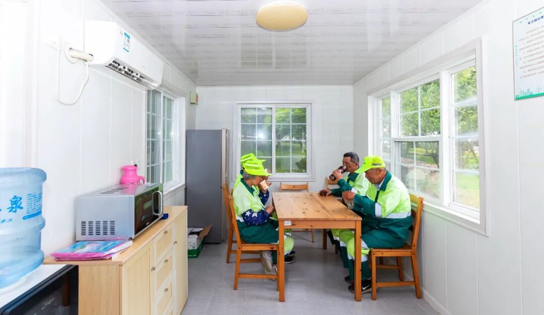 在实现基础覆盖的基础上,今年的工作重点转向了现有站点的标准化提升与功能强化。一方面,住房城乡建设部门着力打造了一个市级示范性“环卫工人关爱之家”,涵盖休息、应急医疗、权益咨询宣传、学习阅读、关怀服务等七大功能,为全市驿站建设提供了高标准样板;另一方面,住房城乡建设部门牵头,对全市已建成的445座驿站进行全面的硬件排查与升级补缺,加装空调、电扇等温度调节设备或配备急救医药箱,建立常态化补给机制,有效提升了驿站的舒适度与安全性。