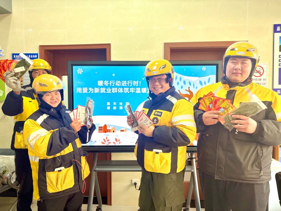 驿站还准备了装满加绒防寒手套、暖宝宝等的“暖冬礼包”。骑手李师傅试戴手套后竖起大拇指:“这手套厚实,骑车正好能用。”这些实用物件不仅抵御了寒风,更让新就业群体感受到被看见、被尊重的温暖,为他们的奋斗之路增添了支撑与陪伴。