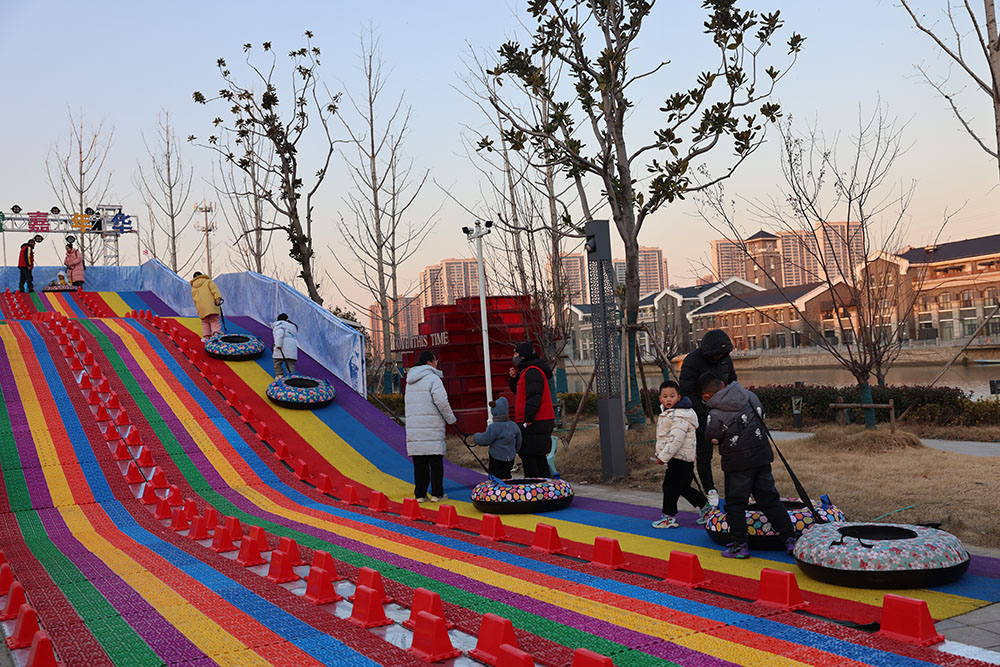 冰刀划过镜面般的冰场,发出清脆的声响,与孩子们的欢笑声、惊叹声交织在一起。-7℃的气温里,连云港市盐河街却蒸腾着前所未有的热气。