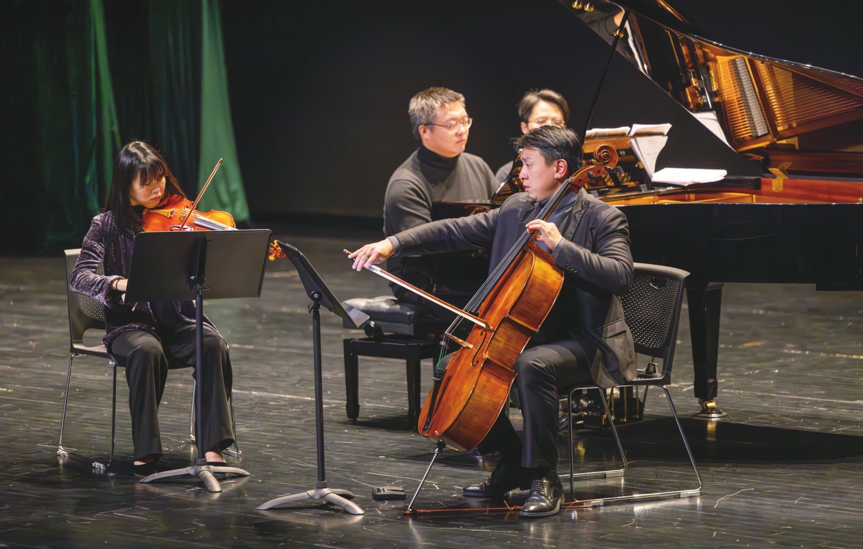 一首首经典曲目触动着在场每一位观众的心灵,大家时而闭目聆听,感受着旋律带来的宁静与美好;时而轻轻鼓掌,表达对演奏者的赞赏与敬意。整场音乐会中,演奏者的默契配合与精湛技艺,以及室内乐独有的细腻与美好,令观众深深沉醉。