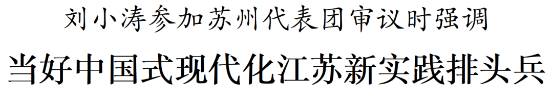 苏州代表团气氛活跃、讨论热烈,范波、吴庆文、陈丽艳、陈羔、张伟、沈彬、陈文源、陈志明等代表先后发言。大家一致认为,政府工作报告通篇贯穿习近平新时代中国特色社会主义思想,深入贯彻习近平总书记对江苏工作重要讲话精神,充分体现党中央、国务院部署和省委工作要求,是一个求真务实、开拓创新、催人奋进的好报告。代表们围绕产业发展、科技创新、对外开放、城市建设、沪苏同城化、航道升级、乡村振兴、民生保障等提出了意见建议。刘小涛听取代表发言,并同大家深入讨论交流,表示将认真梳理、逐条研究,把大家的真知灼见切实转化为推动高质量发展的实绩实效。