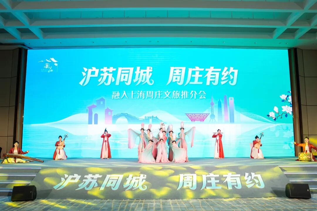 推介会以《只此周庄》精彩选段开篇,灵动舞姿与悠扬旋律尽显江南诗情。以宋人与现代青年的叙事为线索,既展周庄古典韵味,更喻沪苏文脉相通、发展相融,让嘉宾沉浸式感受水乡魅力。
