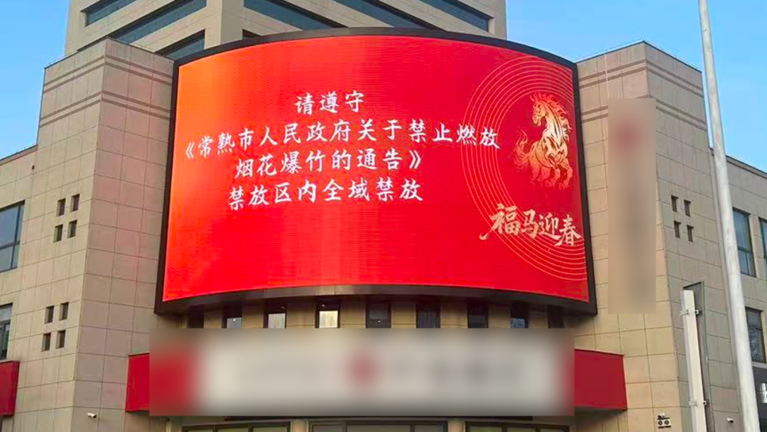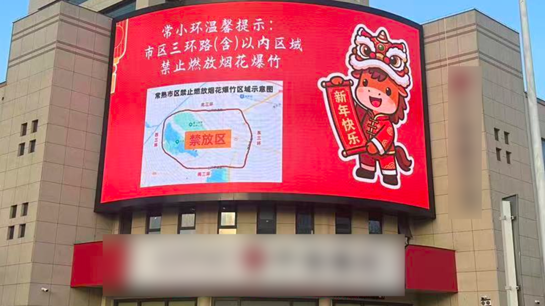 常熟温馨提示:市区三环路(含)以内区域,禁止燃放烟花爆竹,请遵守《常熟市人民政府关于禁止燃放烟花爆竹的通告》,禁放区内全域禁放。