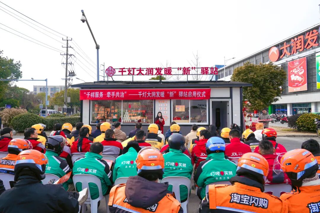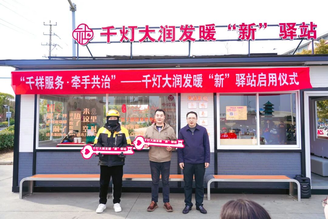 新春将至,暖意先行。2月9日,“千样服务·牵手共治”——千灯大润发商圈暖“新”驿站启用仪式在千灯大润发广场上举行。市委社会工作部和千灯镇相关领导,镇“两新”组织党委等部门负责人,大润发超市千灯店负责人及周边爱心商户代表,新就业群体站点负责人以及从业人员代表共同见证这一温暖时刻。