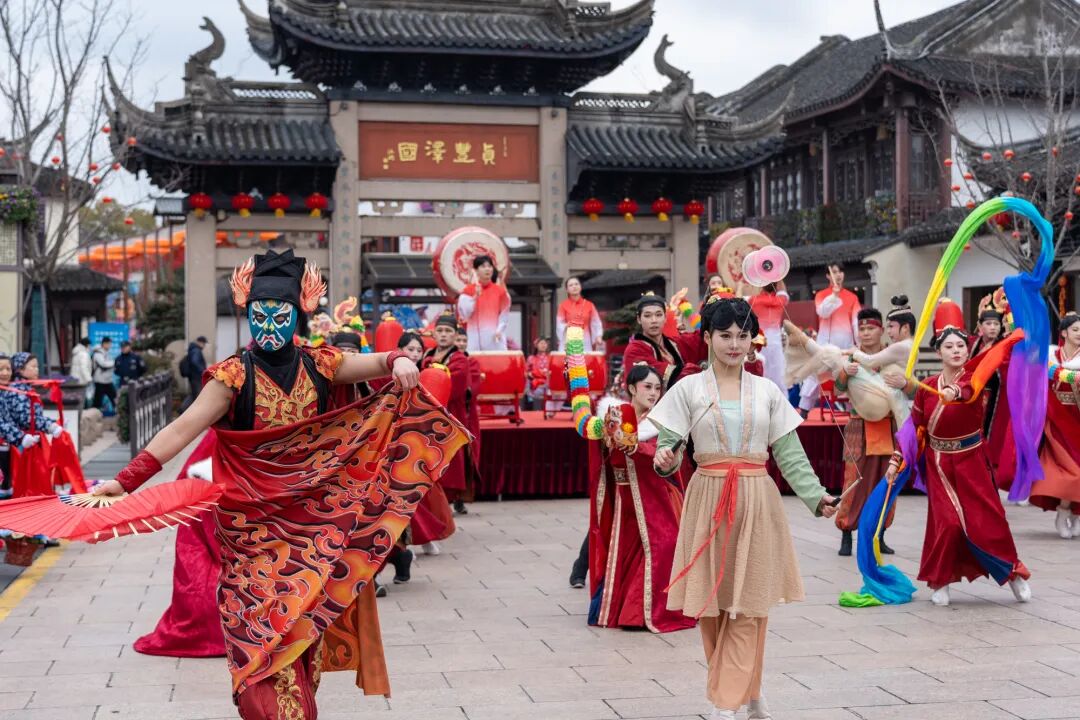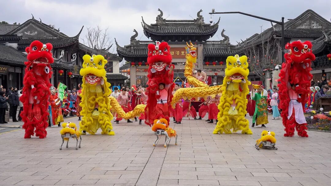 打春牛、迎财神、机器人舞狮、非遗潮集、民俗巡游、古宅花展、夜游灯会…… 从初一到初七,水乡周庄将一系列非遗年味精心呈现。