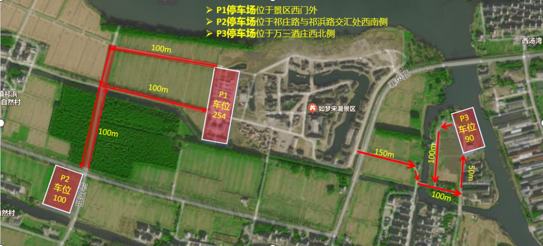 春节假期,可导航至如梦宋潮景区游客中心停车场(全天免费),景区将按P1、P2、P3依次开放,请配合现场工作人员指引,有序停车。同时,景区还将提供【P12周庄中学停车场-景区】免费接驳服务,出行游玩更从容。