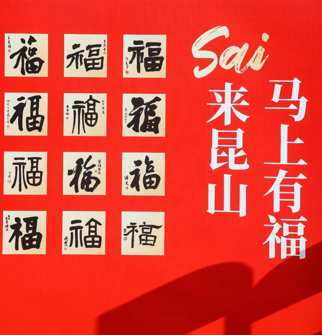 喜庆的“马住好运”主题背景板格外醒目