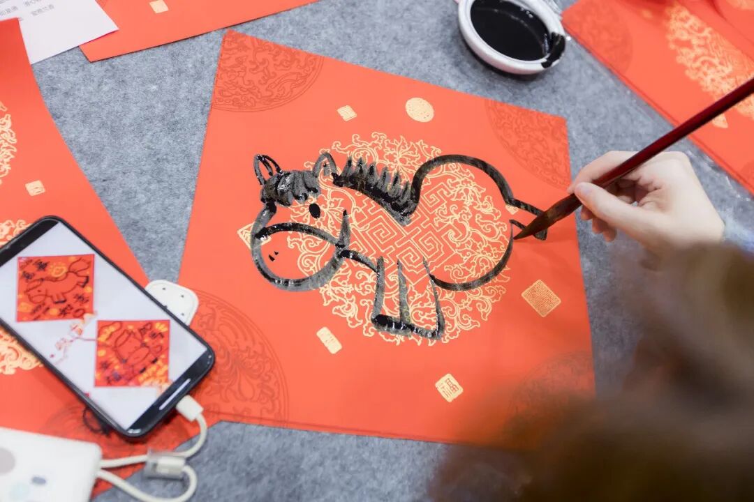一副副春联、一个个“福”字与小马