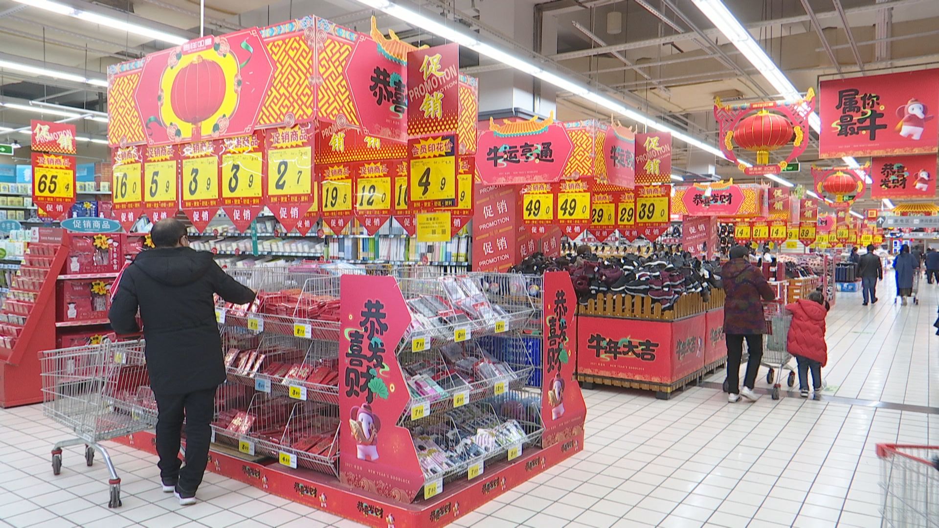 “为了做好商品保供无忧,超市针对必备的年货品类提前储备并大量陈列,生鲜蔬菜、肉类、水产品等品类繁多,其中粮油和米面较去年增加了30%的备货量。”据大润发千灯店客户经理盛娟介绍,眼下,超市正在开展“年货大街”活动,以丰富的商品种类、充足的供应量、过硬的产品质量,让广大消费者享受“年货商品一站购足”的体验。“春节期间,超市白天营业时间延长,与电商合作的线上购物配送到家不间断,确保老百姓购物无忧。与去年同期相比,超市销售额增长了近20%。”盛娟说。