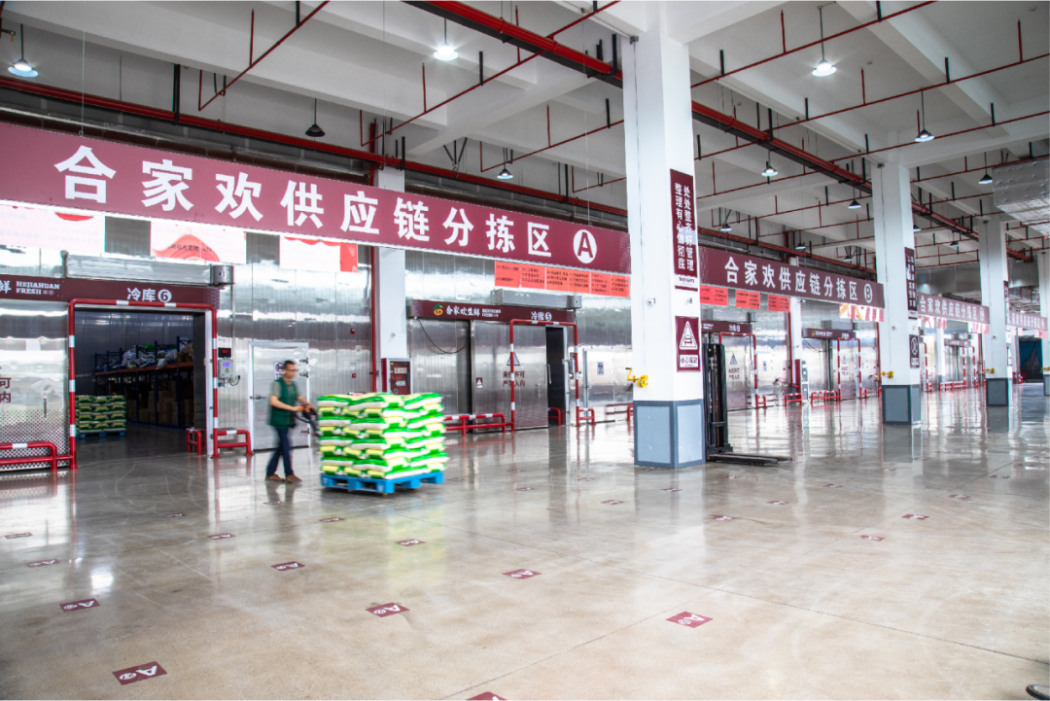 “晨摘午食”的背后,是冷链黑科技的全程护航。经过加工车间的精细处理,成箱的货物会被送往现代化的配送中心,发往全国各地。春节期间,合家欢为常州、泰州等500多家单位供应食材,每天保障的就餐人数超过50万。