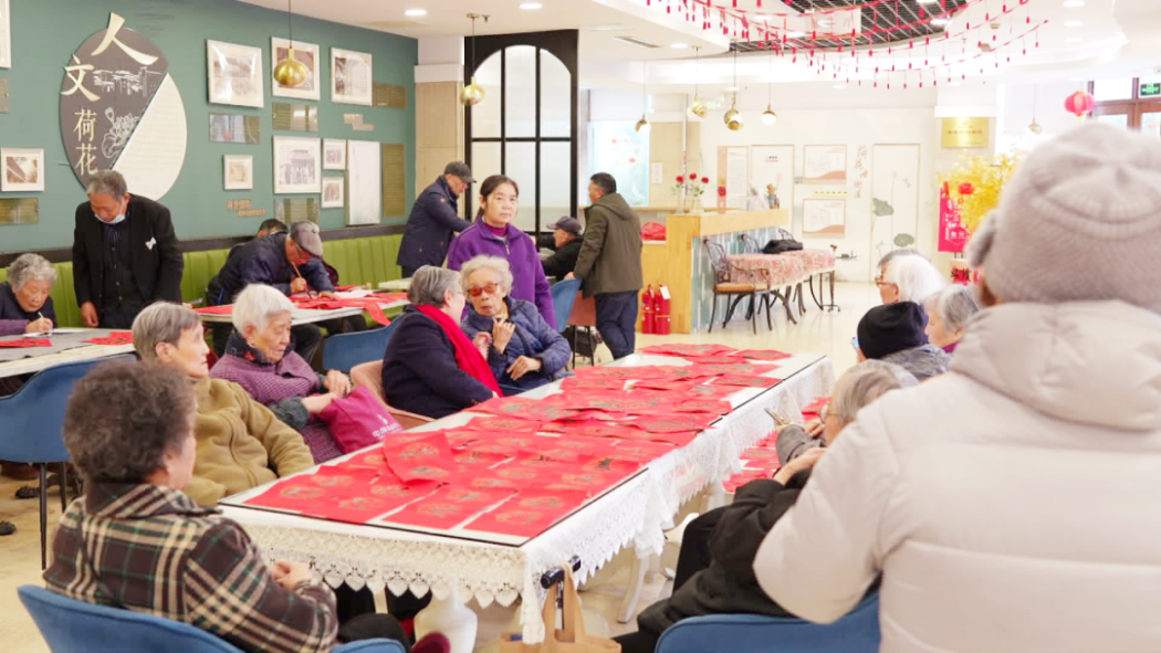 来到幸福天年老年公寓,今年春节公寓共有170名老人选择留在这个“大家庭”里过年,为了给老人营造愉快幸福的春节氛围,公寓安排了老年人春节联欢晚会、书法鉴赏、新春集市等活动。
