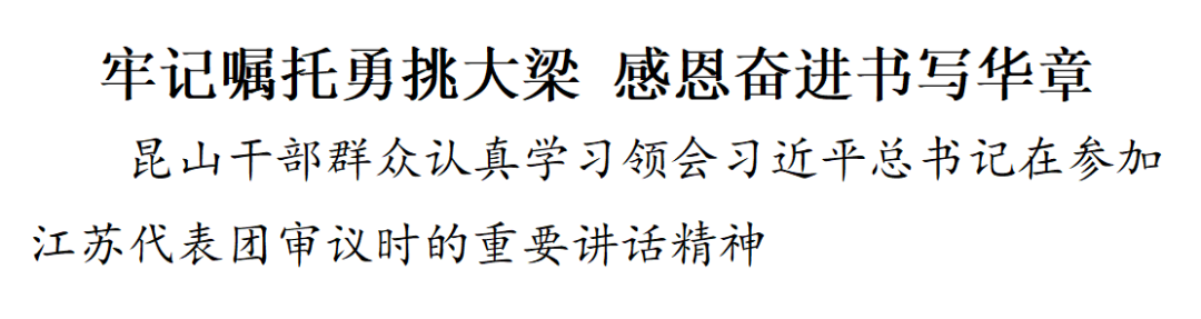 昆山干部群众认真学习领会习近平总书记在参加江苏代表团审议时的重要讲话精神