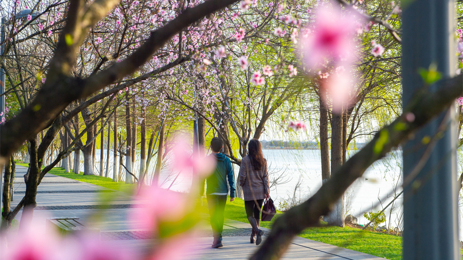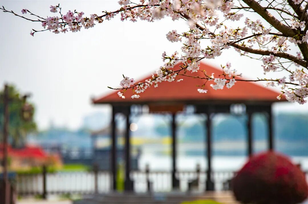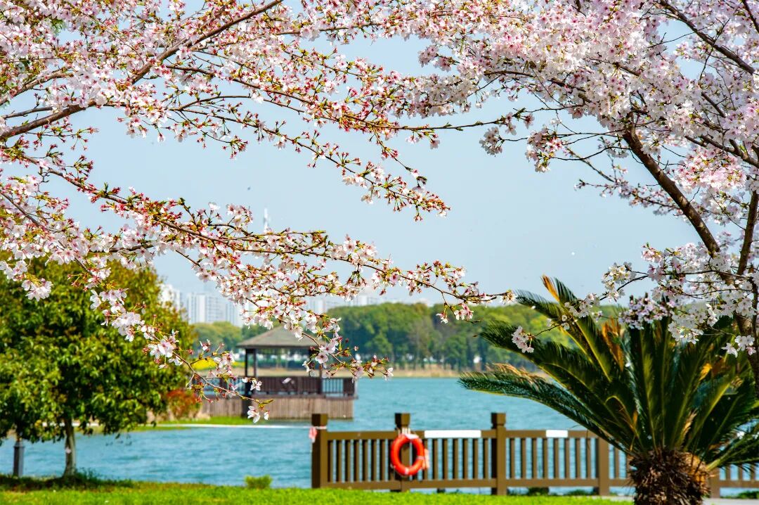 鳗鲤湖畔的樱花随之踏风而来