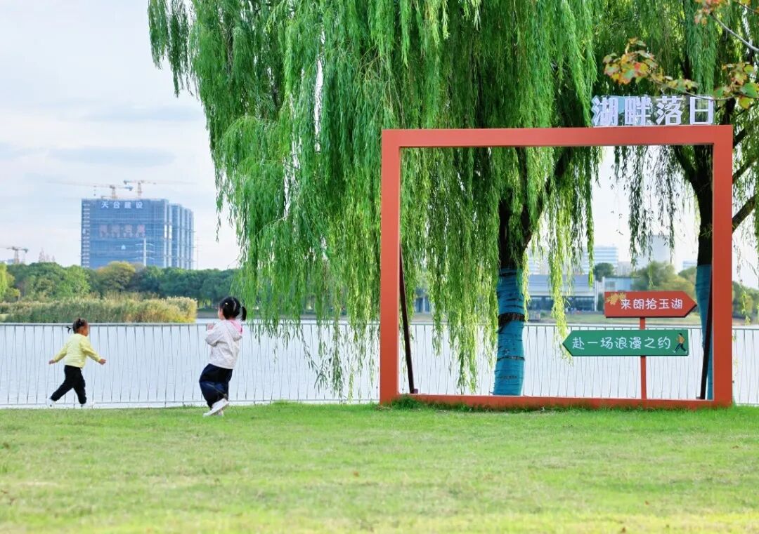 3.5万平方米的玉湖公园,是一座可触摸、可参与、可感知的自然课堂。平日里,孩子们在“星海奇旅”主题乐园中化身“小鱼”遨游,在沙滩上挖出“星星宝藏”;老人们漫步湖畔,感受清风拂面;跑步者在3米宽的环湖跑道上挥洒汗水。分龄化的设计、生态海绵区的科普步道、原生态的林下空间,让自然成为最好的老师。夜晚,柔和的灯光点亮园区,守护着每一位游人的安全与安心。玉湖公园,正如其名,正以“有机更新、弹性生长”的姿态,持续为城市注入自然与温情。