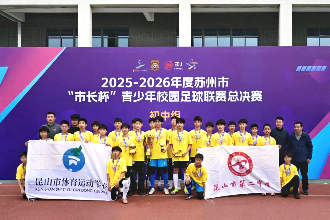 3月15日,2026年苏州市“市长杯”青少年校园足球联赛初中组总决赛在苏州高新区落幕。昆山市第二中学(体育班)足球队以6战全胜、进40球、丢2球的战绩强势夺冠,昆山市亭林初级中学荣获初中女子组第七名,为昆山校园足球再添荣光。