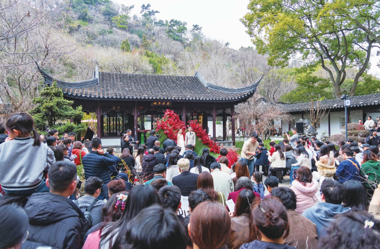 “我们以生态美景和文化底蕴为底色,打造‘一站式’婚恋文旅场景。”亭林园总经理助理谈晔佳表示,定制化浪漫仪式不但为亭林园的人文古韵与自然春色增添了甜蜜元素,更成为园区挖掘小众高端场景、拓展“甜蜜经济”的鲜活范本。未来,园区将持续做强“甜蜜IP”,让亭林园成为见证幸福、传递浪漫的城市新地标,为昆山文旅消费注入更多温情与活力。