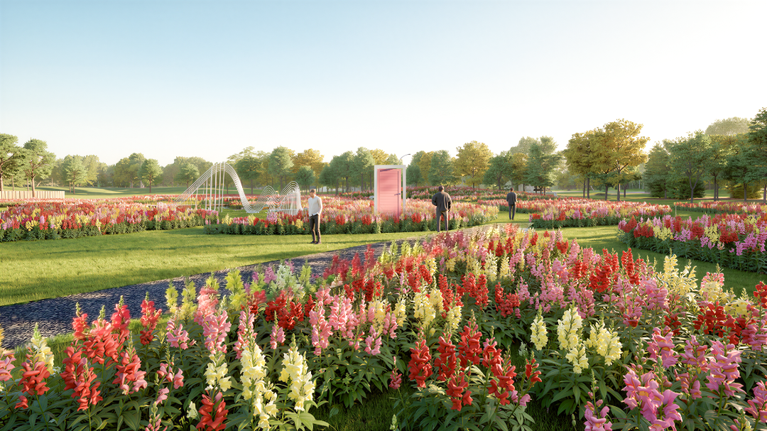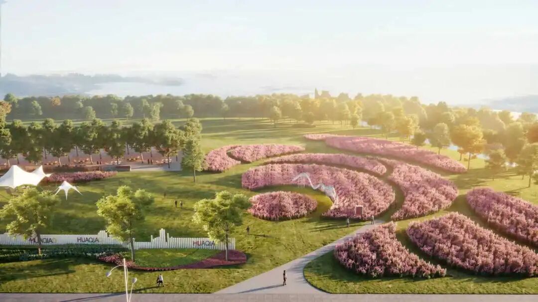 本次更新面积约4万平方米,通过修整现状花海边界、轮换花海植物品种、扩大草坪面积(活动场地)、梳理游览线路以及局部增加艺术打卡装置和无动力娱乐设施等方式,串联场地内部现有景观资源,赋予场地更多休憩、社交、打卡拍照的功能,让轨交花桥站更具时尚活力。