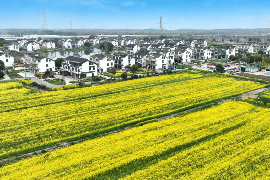 金浪翻滚,气势磅礴。夕阳西下,金色的阳光洒在花海,也洒在远处的古镇上。这一刻,周庄的春天,美得不真实,却又真实地呈现在眼前。