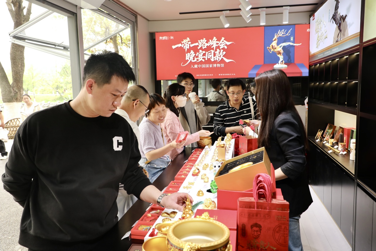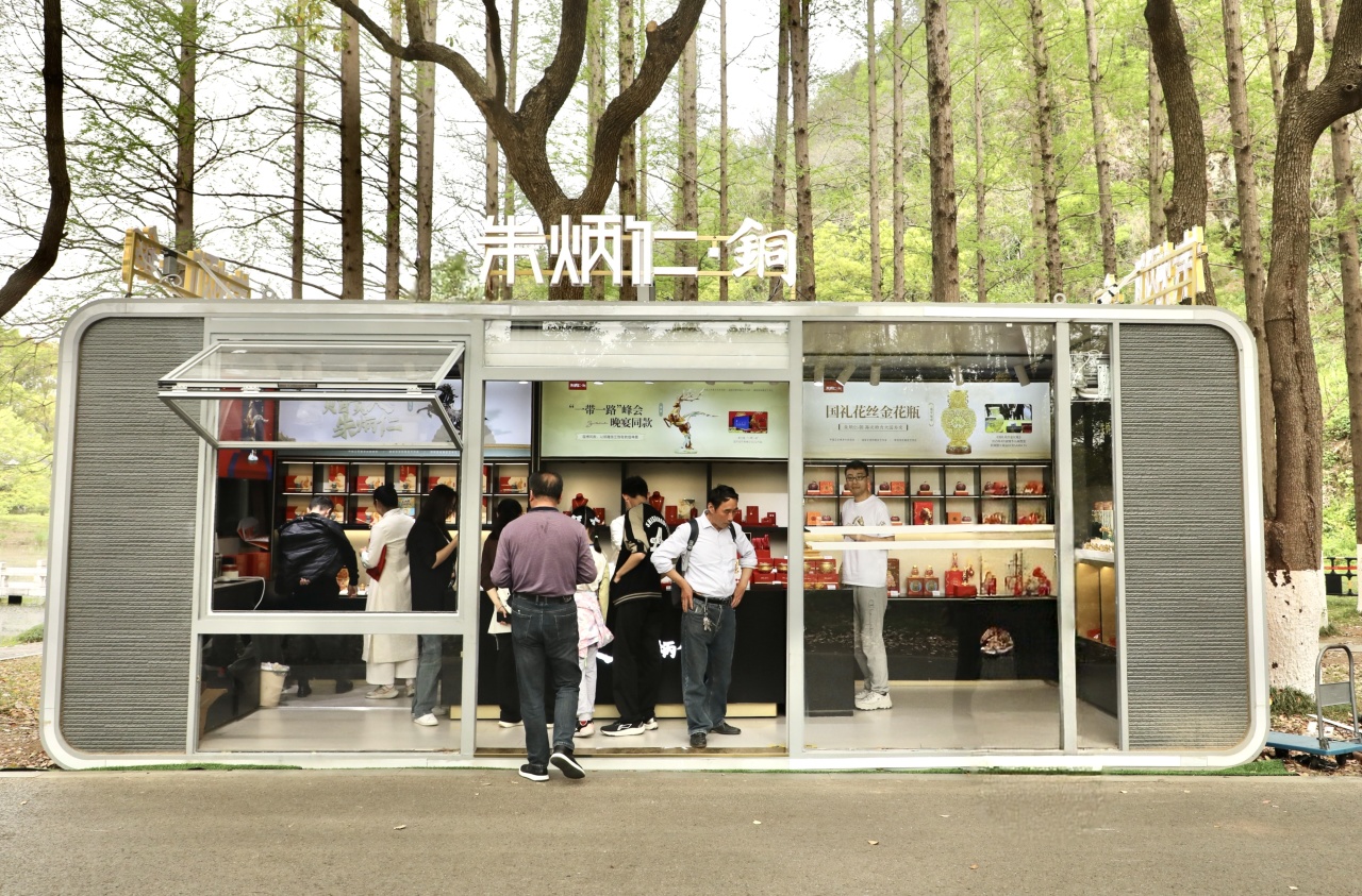 亭林园内玉峰秀色,古韵悠长。一座精心设计的集装箱快闪店别致亮相,集中展示元宝、雕刻、装饰、挂饰等丰富多元的铜艺文创产品。“朱炳仁·铜”品牌承袭1875年创立的“朱府铜艺”,由第四代传人、中国工艺美术大师朱炳仁与其子暨第五代传人朱军岷共同创立,是中国铜艺领域的标杆品牌。朱炳仁为铜雕技艺国家级非物质文化遗产代表性传承人,作品多次作为国礼赠予外宾,连续十余年荣登央视除夕荧屏,成为向世界展现中国铜艺魅力的重要窗口。