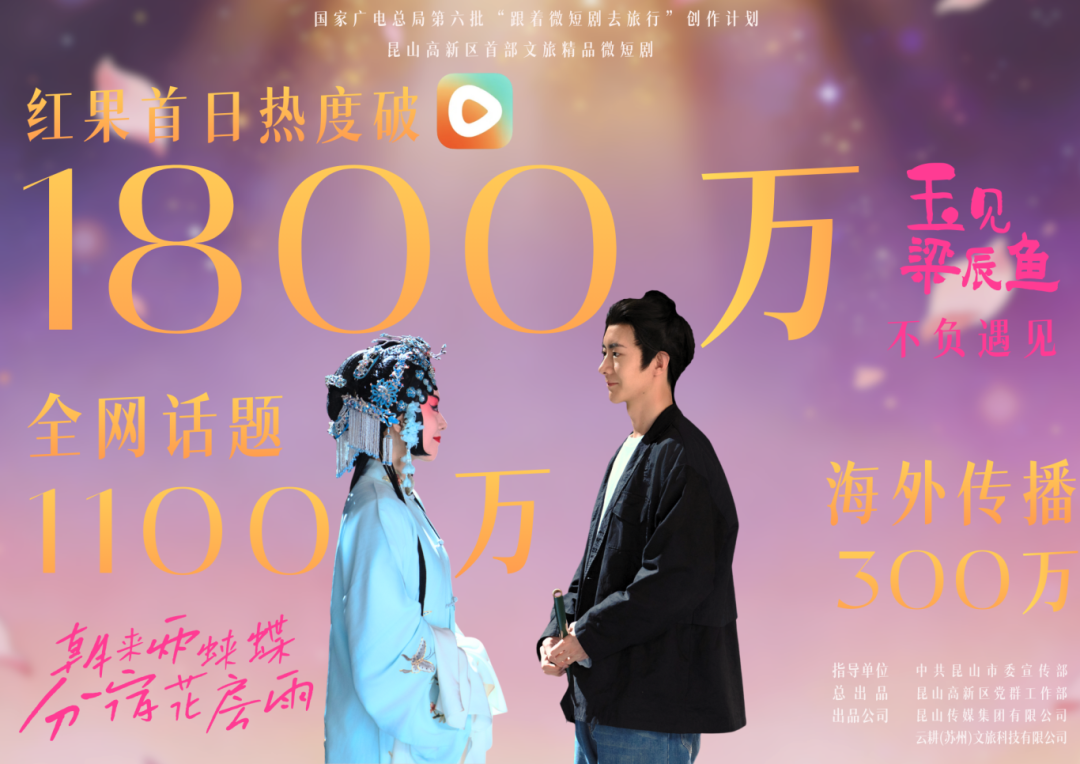 《玉见梁辰鱼》2025年9月上线,剧集上线即引爆全网,登陆央视频、江苏卫视等主流平台,发行至香港Now TV及海外平台;红果平台首日播放量突破1800万,相关话题全网曝光超1100万,获《光明日报》《新华日报》等权威媒体报道30余次,更成功入选国家广播电视总局跟着微短剧去旅行创作计划,为苏州市唯一入选项目,斩获苏州艺术基金、昆山文化强市建设专项扶持等多项荣誉。