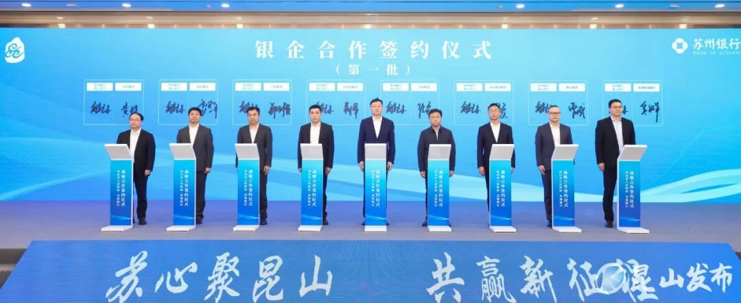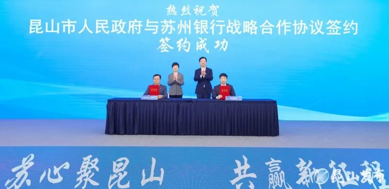 现场,昆山市人民政府与苏州银行达成战略合作,苏州银行将在未来三年间向昆山地区投入300亿元新增授信,双方将在科技金融、跨境金融、产业升级、城市更新等领域开展全方位合作。