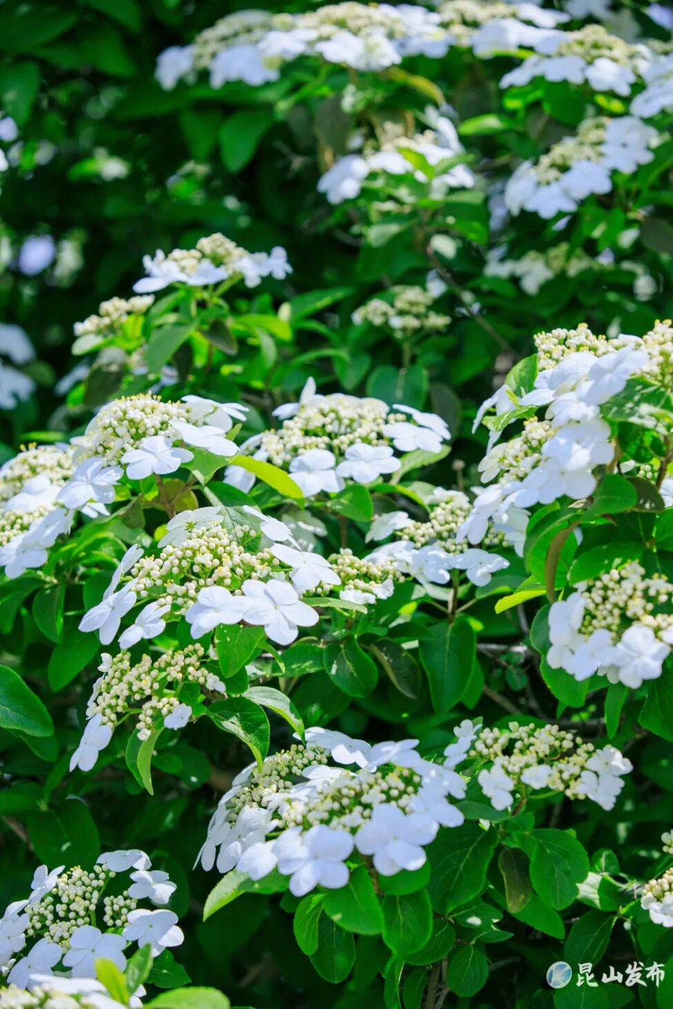 琼花如玉盘铺满亭林,绣球花堆叠出梦幻云朵