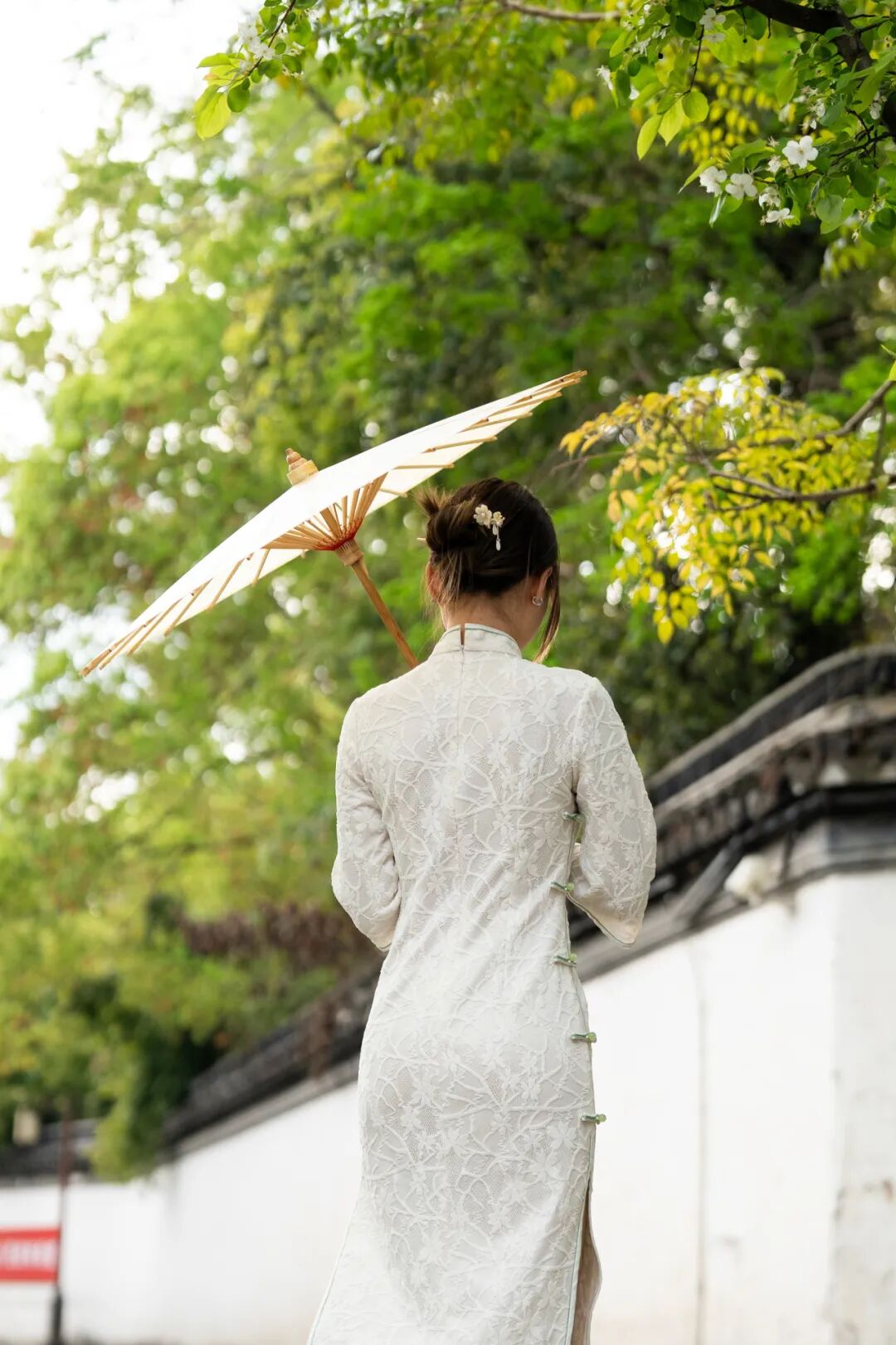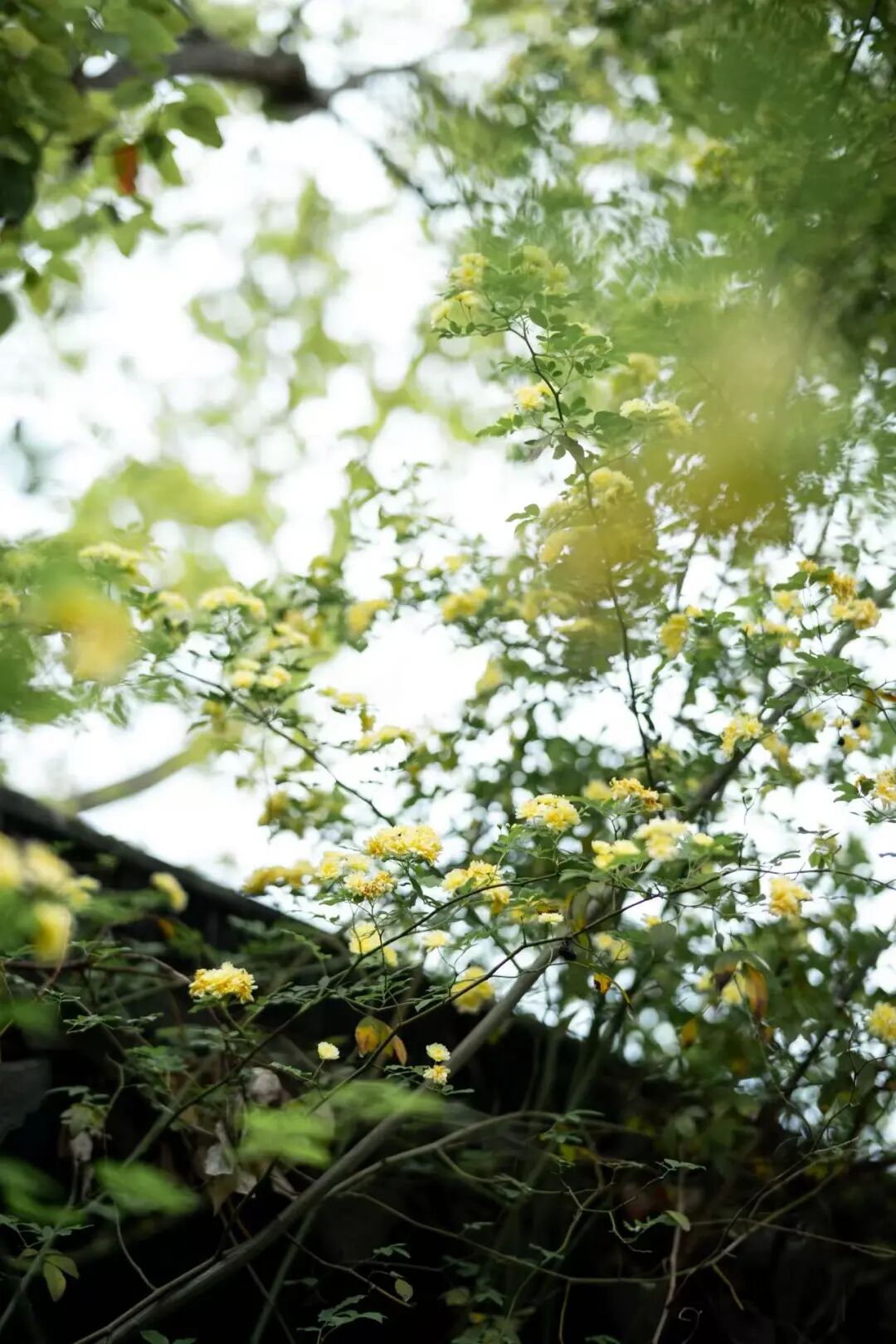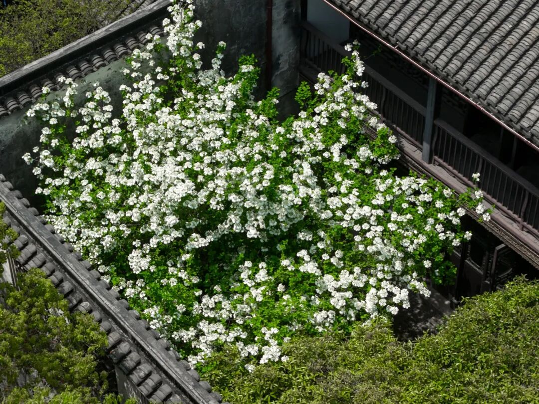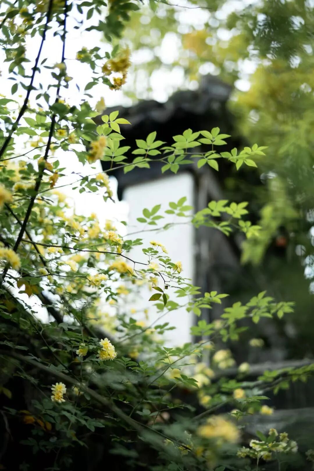 周庄博物馆的院墙边,木香花静静地垂落。细碎的小白花密密匝匝,像一串串星星串成的瀑布,从墙头倾泻到半腰。