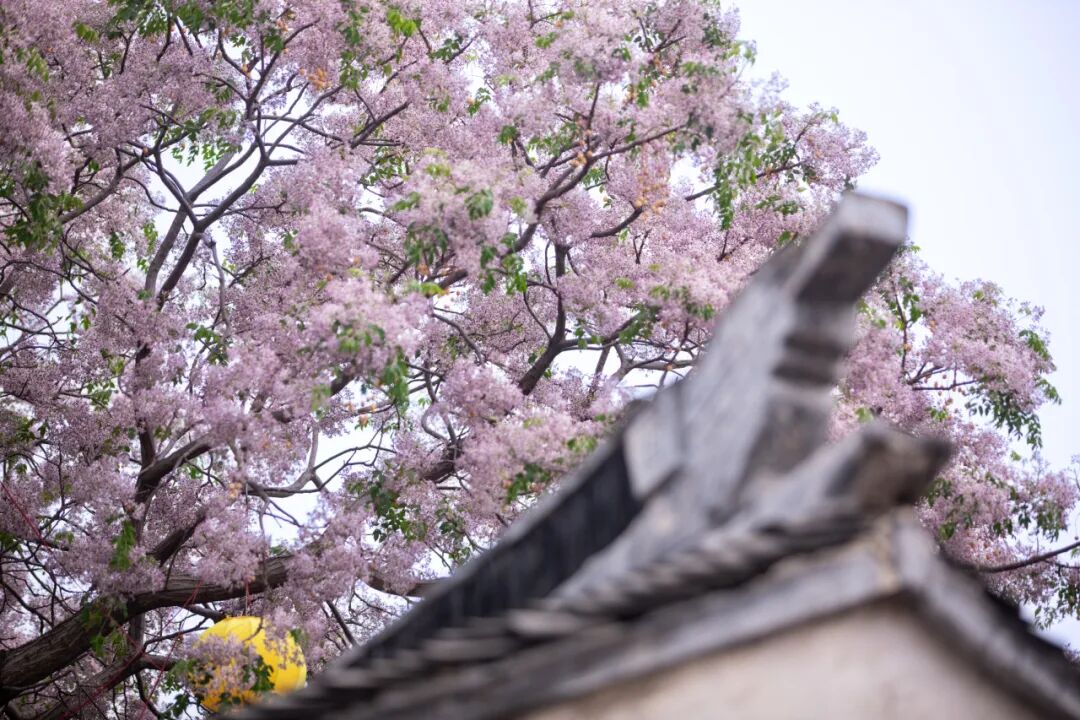 檐角旁的楝花开了,淡紫的小花细细碎碎,远看像一层薄雾笼在枝头。风来时,花瓣飘落水面上,像是给流水写了一封又一封短笺。