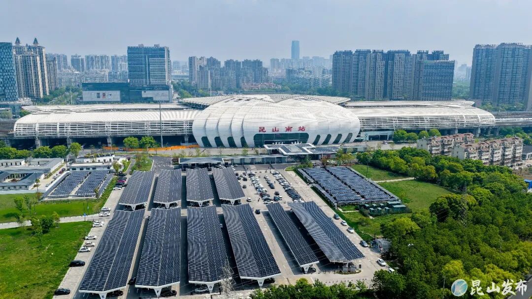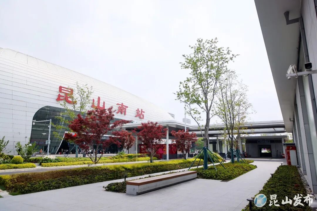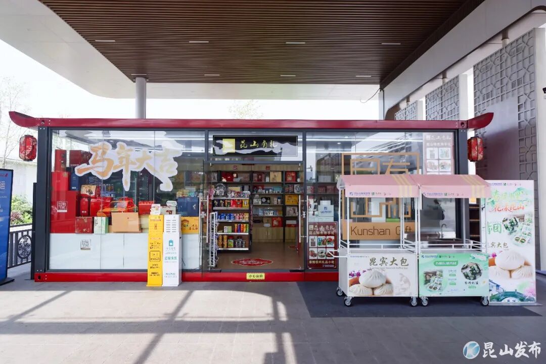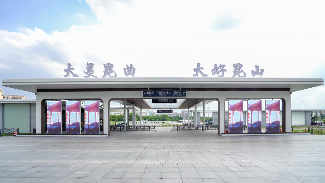 中央“大美昆曲 大好昆山”LED大屏循环展示昆山城市风光,旅客出站即与城市文化撞个满怀;接站区域的风雨连廊,营造出“檐下避雨、步移景异”的水乡体验;仿古铝代木人字顶结构精准还原传统木构的光影节奏,让技术与诗意实现巧妙平衡;“昆山有礼”文创好物琳琅满目,每一份都是昆山的“移动名片”,让归途既有速度,更有温度。