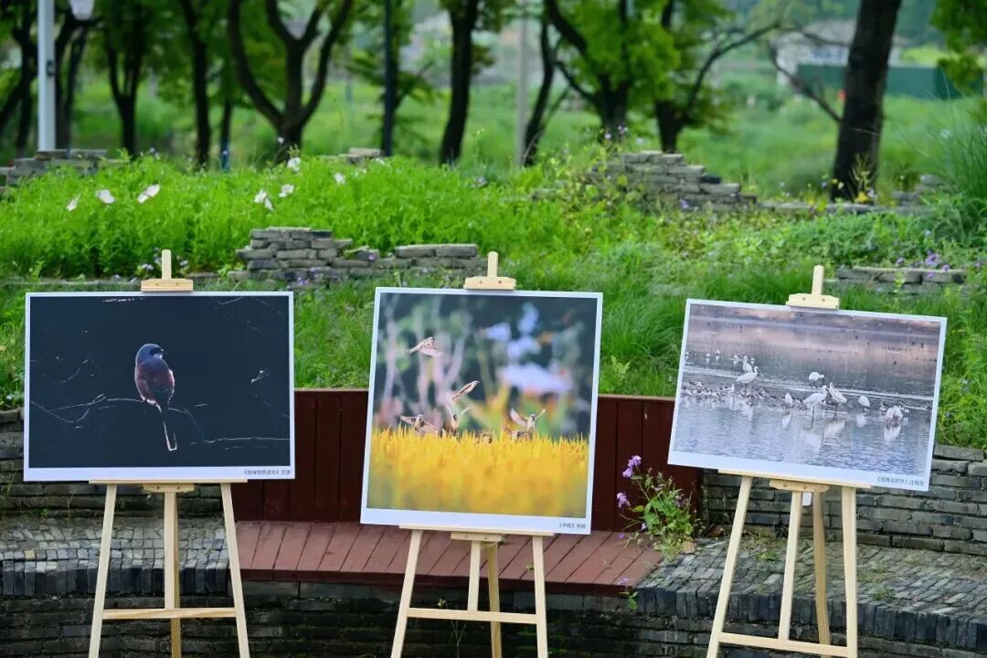 活动当天,青葵自然乐园外古窑址间,化身成为鸟类摄影展厅,一场与飞羽的“约会”在繁花绿意丛中徐徐展开。当晨光初染五湖三荡,鸟鸣叩开河岸的寂静;当暮色浸透无边田野,羽翼掠过滚滚稻浪……这些被镜头定格的生命诗篇,悄然铺陈于方寸画框之间。一幅幅鲜活生动的鸟类影像,串联起锦溪湿地开阔、植被葱郁、河湖清澈的生态图景,直观生动地呈现了锦溪镇生态成果,传递着人与自然和谐共生的美好理念。