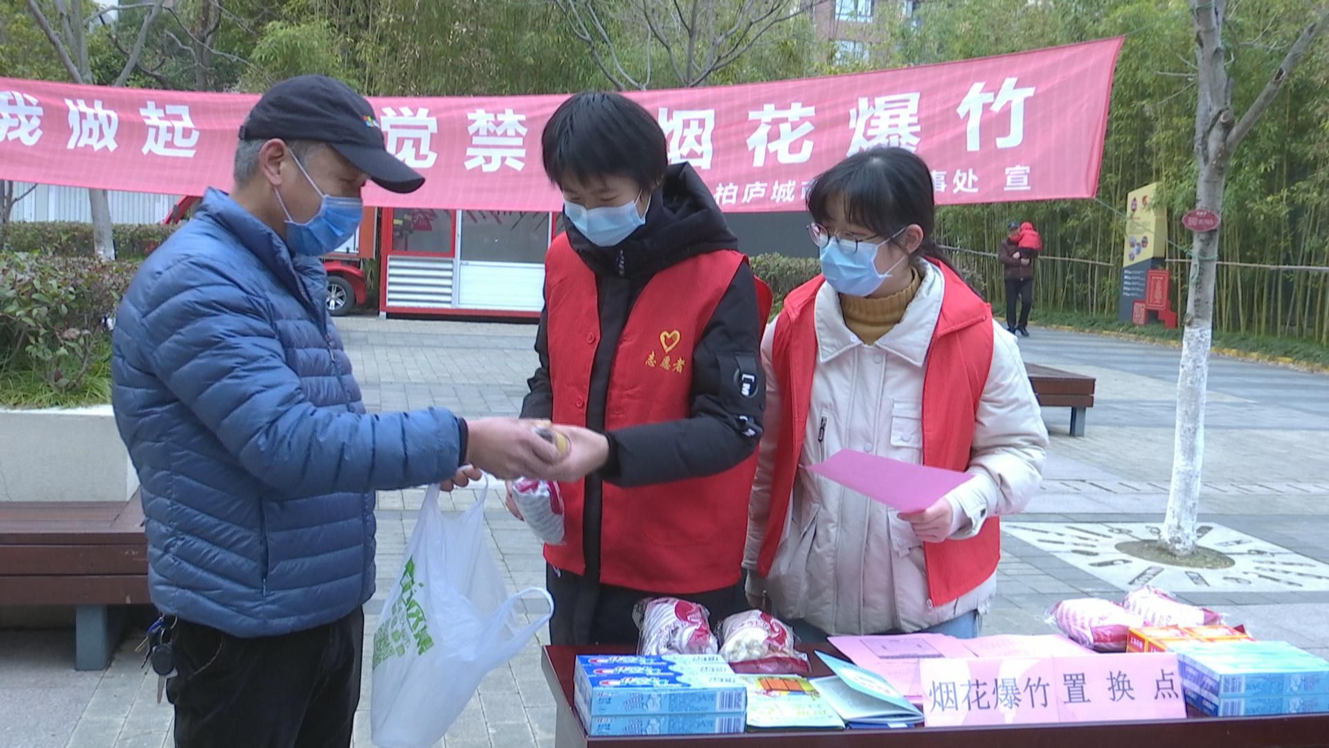 在金塘园小区,电子显示屏循环播放着禁放烟花爆竹的宣传内容。为方便已经购买烟花爆竹的居民,社区里专门设置了烟花爆竹置换点,还向居民发放禁放告知书。在小区醒目位置,设置有烟花爆竹禁放宣传展板,居民楼的楼道口也都张贴了宣传单。晚上,小区物业人员和社区网格员、志愿者们会不定时在小区内巡逻,保障禁放工作落到实处。