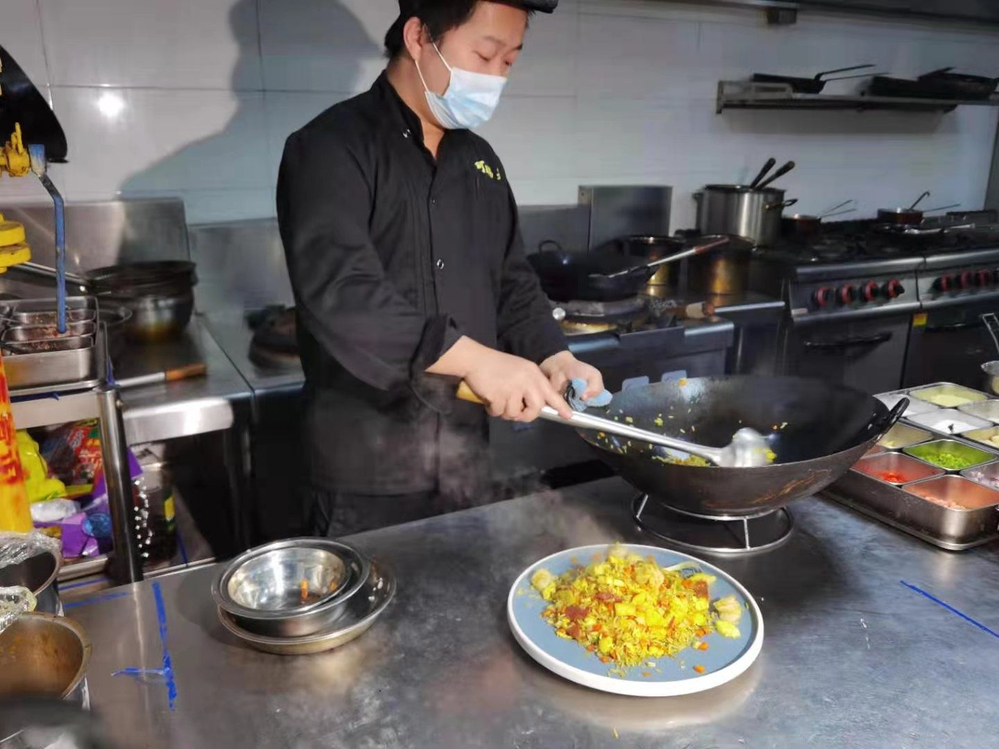 作为昆山夜经济的璀璨明珠,大渔湾有着许多让人垂涎和值得打卡的美食网红地,大渔海棠就是其中一家。近日,当记者在傍晚时分走进这家餐厅时,大厅里已经有很多客人在有序等位了,生意红火可见一斑。餐厅中,几乎每桌客人都会点同一道菜品,也是大渔海棠的招牌菜——皇帝炒饭。这道菜有故事、有名气,味道也是一绝,它出自主厨沈南之手。沈南是周星驰电影《食神》中人物原型戴龙先生的徒弟,他将《食神》中的皇帝炒饭带到大渔海棠,很多客人因此慕名而来。记者看到,新鲜出炉的皇帝炒饭被精心摆盘成一朵梅花的形状,金黄喷香的米饭上覆盖着一粒粒晶莹剔透的鱼籽,光看外观就让人食欲大增。沈南介绍说,皇帝炒饭的食材十分考究,鸡蛋是农家土鸡三天内产的新鲜鸡蛋,水选用矿泉水,加上泰国的香米、法国的鱼籽、新加坡的酱料,以及厨师独门的烹饪手艺,才造就了这一经典招牌菜式,推出以来深受食客的欢迎。