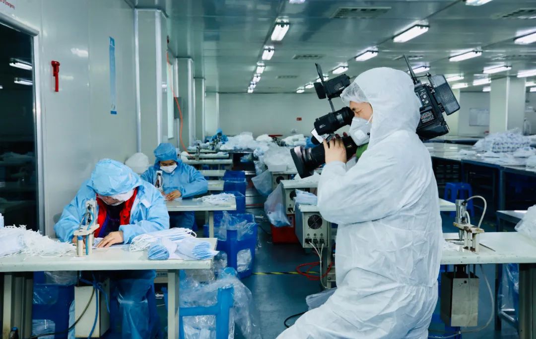 ▲融媒体记者在昆山洁宏无纺布制品有限公司采访