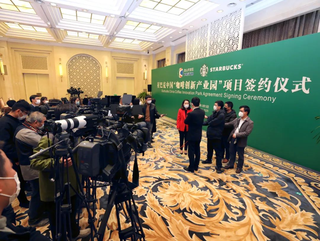 ▲3月13日,昆山市融媒体中心记者采访星巴克全球执行副总裁、星巴克中国董事长兼首席执行官王静瑛