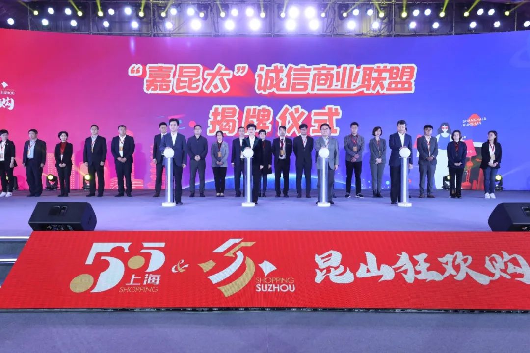 启幕仪式上,“嘉昆太”诚信商业联盟、“金山·昆山”古镇联盟揭牌,常态化开展诚信商业、古镇联盟互动活动。其中,嘉定、昆山、太仓的20家商贸企业组成诚信商业联盟,联动推介,“抱团”促销费;依托“金山·昆山”古镇联盟,两地将围绕文旅消费、创意设计等开展深层次的合作。