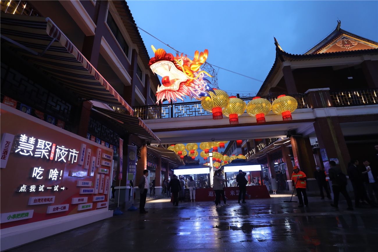 “宝岛又一村”慧聚夜市以“士林在台湾、慧聚在昆山”为主题,多元化街区市集集美食、休闲、亲子、购物、娱乐于一体,融合了台湾特色夜市与昆曲小剧场、奥灶面馆等昆山元素,充分彰显了“昆台一家亲”的理念。
