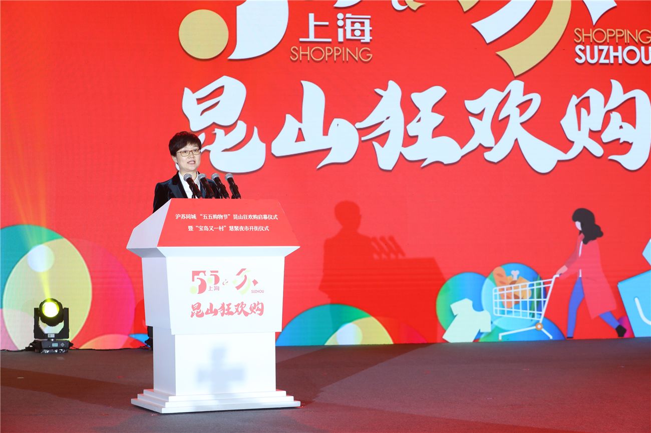 陈丽艳在致辞时表示,举办沪苏同城“五五购物节”昆山狂欢购活动,是昆山融入沪苏同城化的重要举措,也是进一步激发市场活力、释放消费潜力的重要抓手,更是服务构建新发展格局的重要平台,目的是让每个消费者感受到昆山这座城市的温度。昆山作为全国县域经济发展的“领头雁”,是全国购买力最强的县市。今年的狂欢购活动最大特点是沪苏同城、沪昆联动、携手台商,坚持区域合作联动、线上线下融合,不仅精彩纷呈、亮点不断,而且诚意满满、实惠多多,是一场属于昆山全体市民的购物盛会。当然,昆山的好物远远不止舌尖美食、眼前风景,还储备了一批“黑科技”产品,这一切的产品都为了一条,那就是满足人民群众对美好生活的向往。