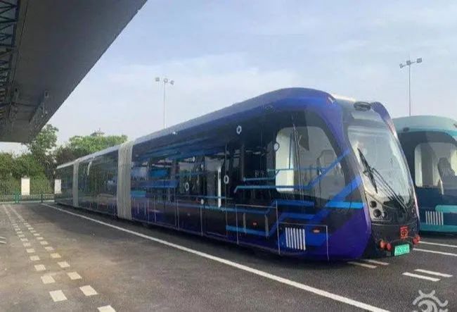 智轨电车跟平常坐的地铁“长”得很像,但实际上它却是在公路上行驶的,一共有三节编组,全长是将近32米,最多可以同时搭乘307名乘客。既有地铁的大容量,又有公交车的灵活性,是一种新型的智慧的出行方式。