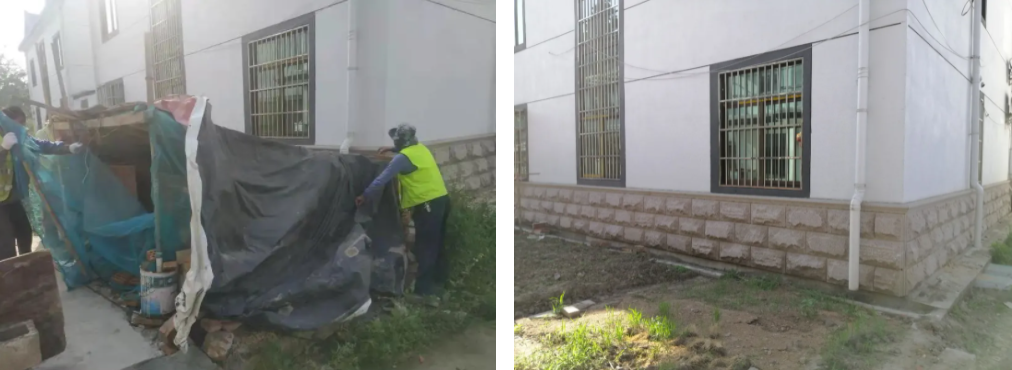 清理宅前屋后堆物34处、公共区域乱堆放22多处、杂草及开垦种菜50余处,补种绿化共计4100平方米,拆除屋外露天洗手池2处,修补道路3处,新增墙面绘画3处。