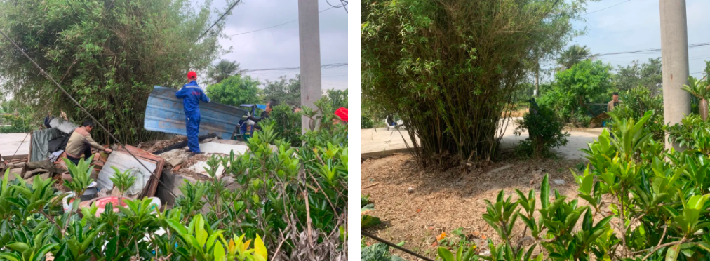 村民积极参与环境整治,清理各类乱堆乱放30余吨、河道垃圾漂浮及河岸垃圾5吨,道路修复平整500米,增设绿色围档200米左右,村容村貌显著提升。