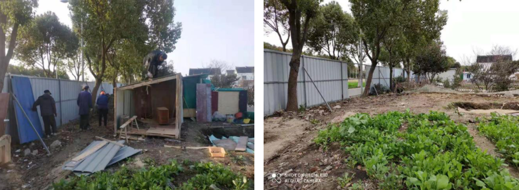 清理乱堆放200处、垃圾及杂物约67吨、凌乱菜园34处、河道围网5处,拆除鸡棚4只。
